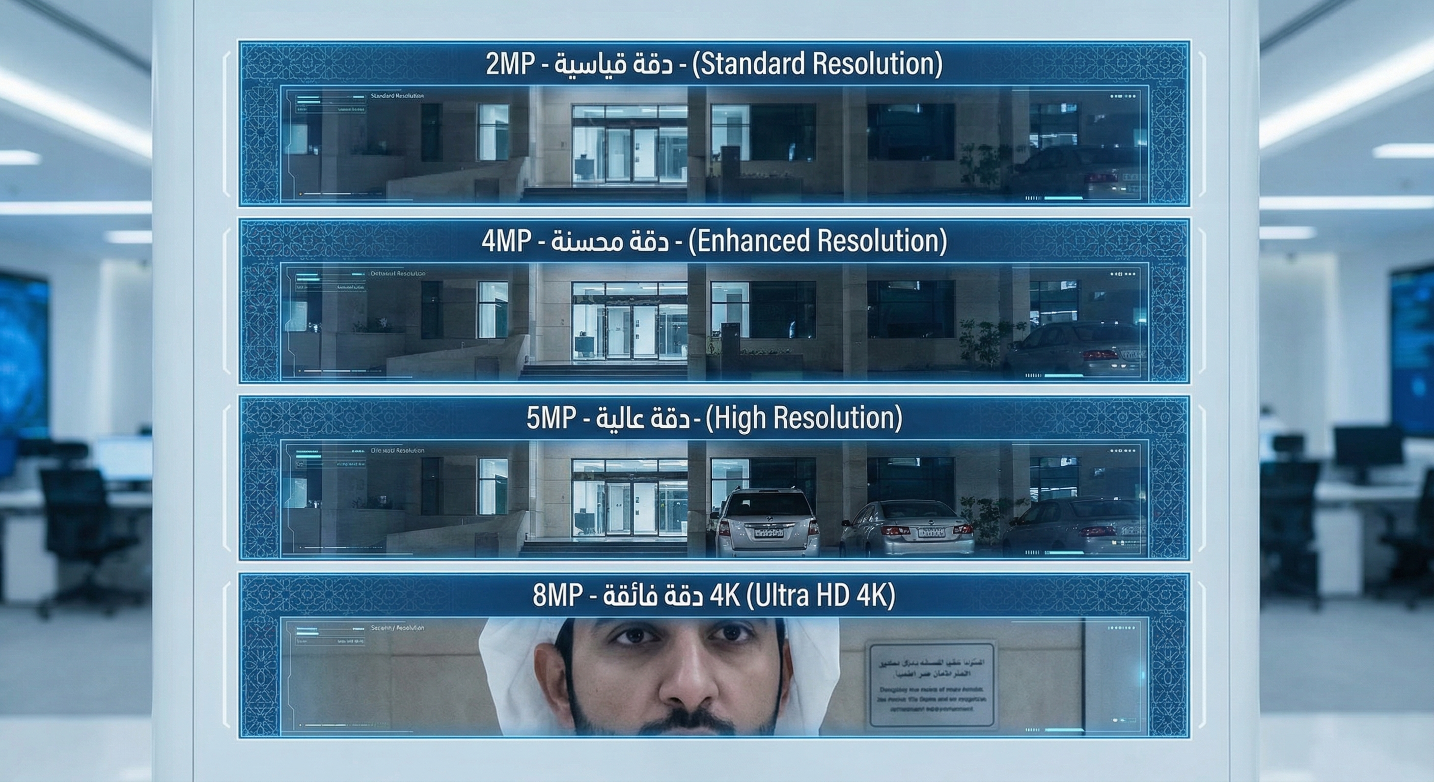 كاميرات 4MP تقدم ضعف دقة كاميرات 2MP، وتُعرف بدقة QHD أو 2K.